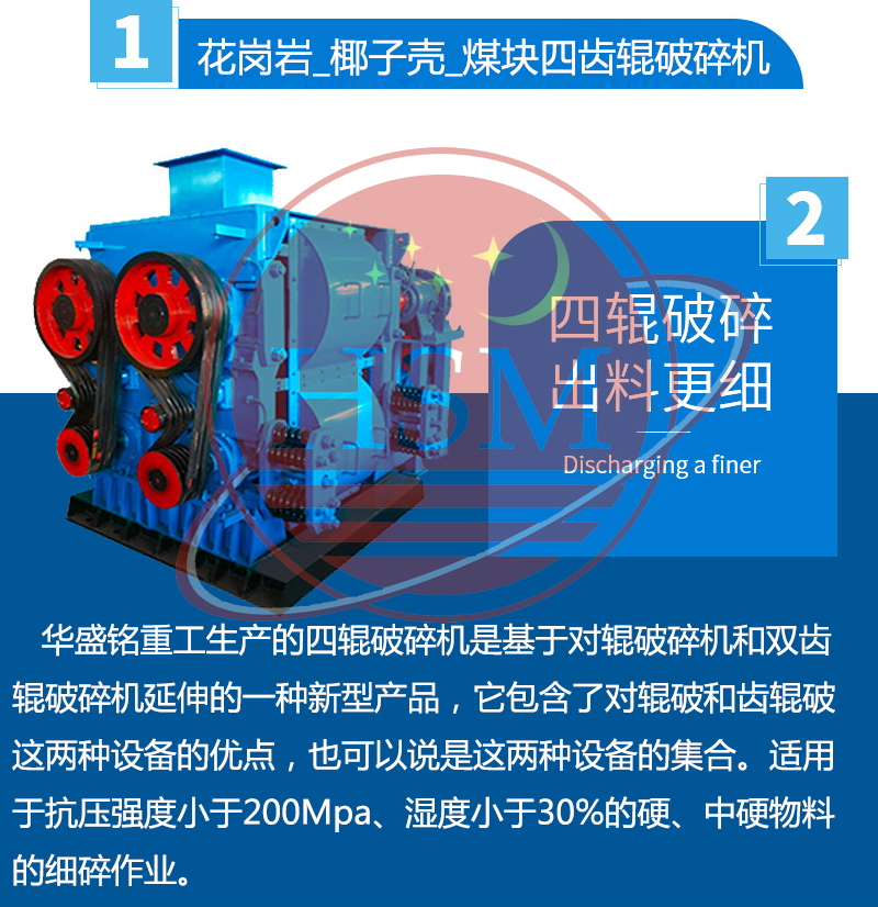 【產(chǎn)品介紹】:華盛銘重工生產(chǎn)的四輥破碎機是基于對輥破碎機和雙齒輥破碎機延伸的一種新型產(chǎn)品,它包含了對輥破和齒輥破這兩種設備的優(yōu)點,也可以說是這兩種設備的集合。本機器具有使用維修費特低、破碎比大、性能可靠、粉塵少、噪音低等特點。。